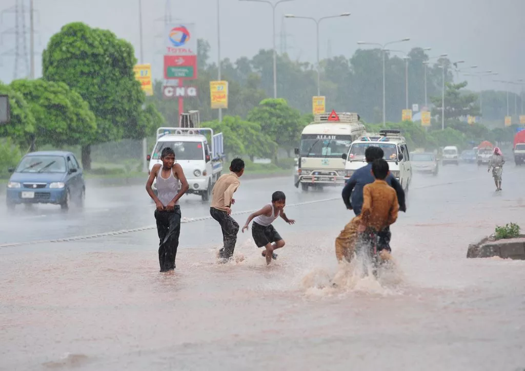 Children play in monsoon rain in Lahore. PHOTO: AFP