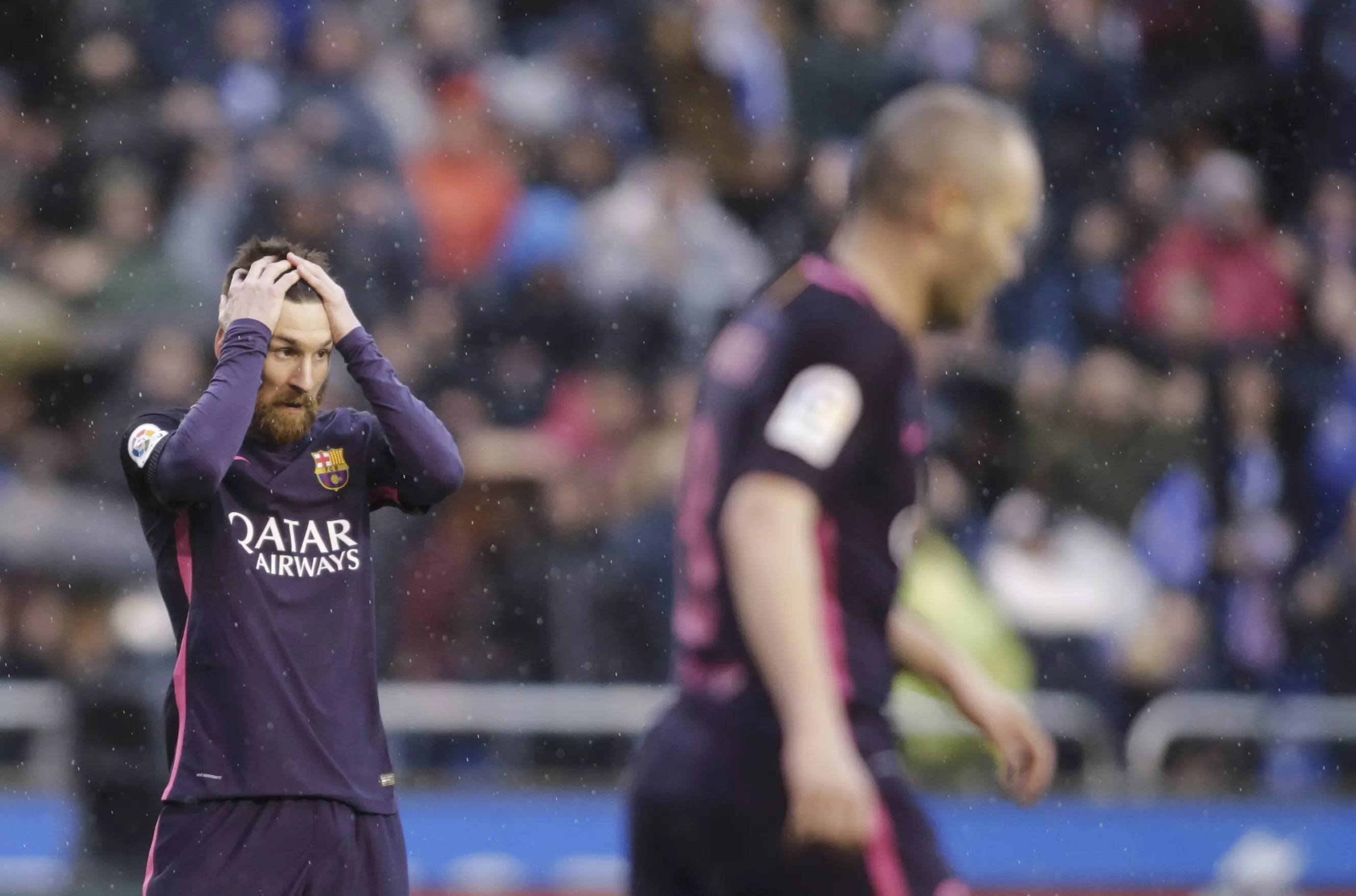 Barcelona's Lionel Messi reacts during the match against Deportivo La Coruna.