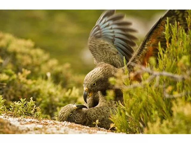 Kea live in alpine areas and are renowned in New Zealand for being intelligent and mischievous, often called "the clown of the mountain".