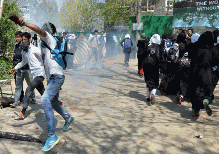 Kashmiri students clash with Indian government forces near a college in central Srinagar's Lal Chowk on April 17, 2017. PHOTO: AFP/FILE