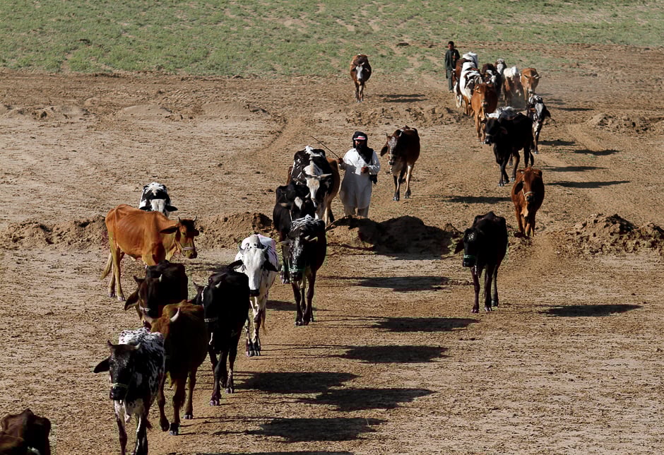 A man herds his cattle in a field in Swabi, Pakistan. PHOTO: REUTERS