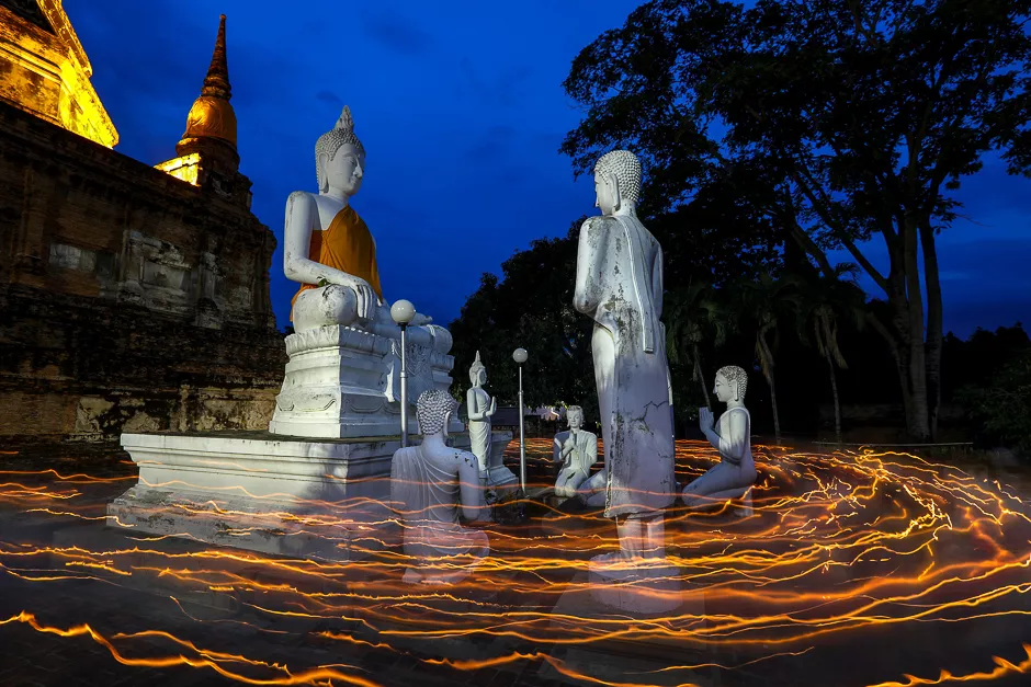 Buddhists carry candles as they pray during Vesak Day, an annual celebration of Buddha's birth, enlightenment and death, at Wat Yai Chai Mongkhon temple in Ayutthaya, Thailand. PHOTO: REUTERS