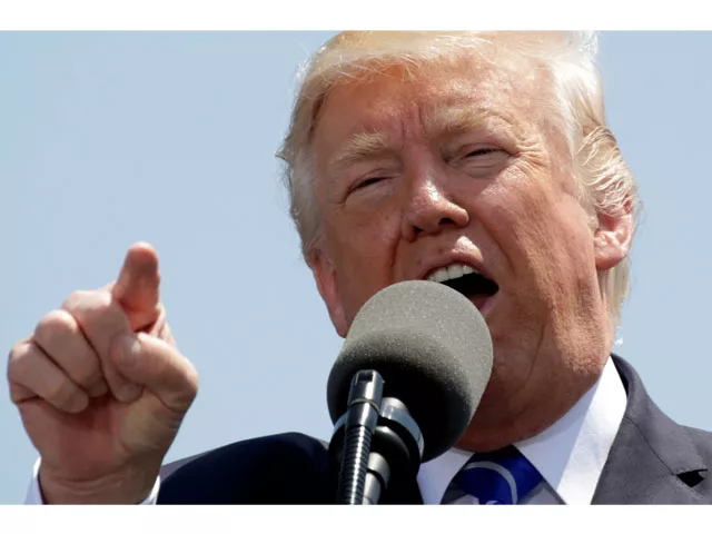 US President Donald Trump speaks during the United States Coast Guard Academy Commencement Ceremony in New London, Connecticut US, May 17 2017. PHOTO: REUTERS