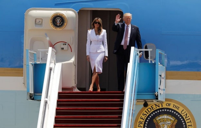US President Donald Trump and first lady Melania Trump arrive aboard Air Force One. PHOTO: REUTERS