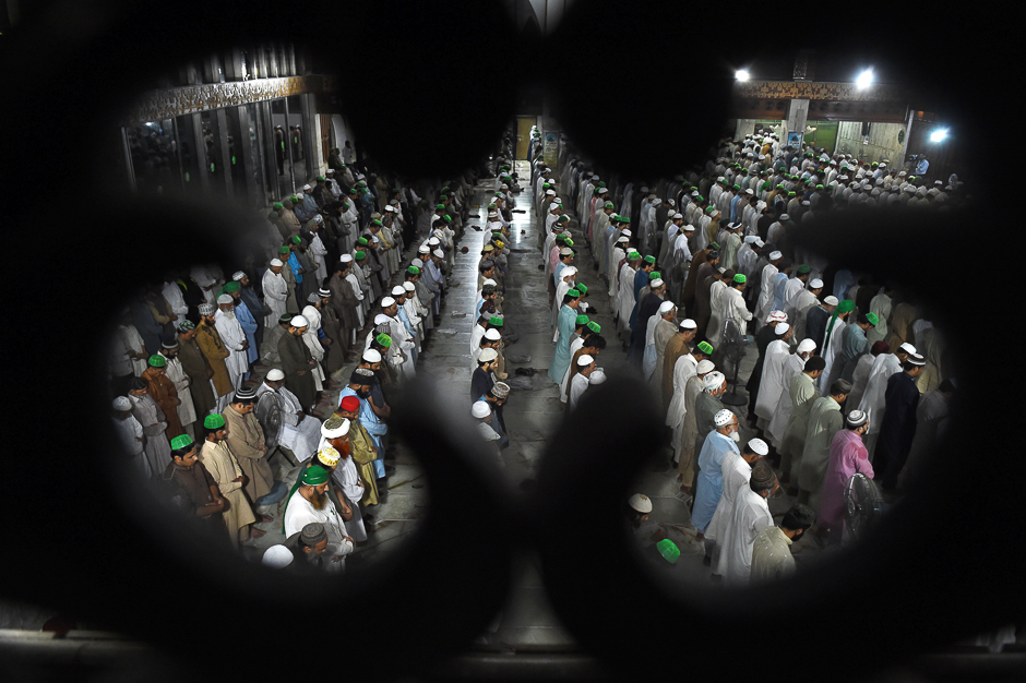 Pakistani Muslims perform a special taraweeh prayer on the start of the holy month of Ramadan at a mosque in Lahore. PHOTO: REUTERS