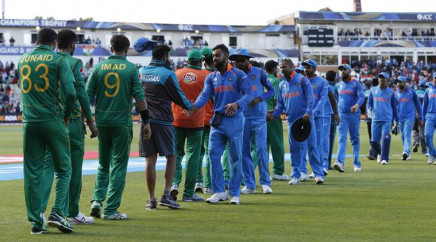 5. This handshake between Mohammad Hafeez and Shikhar Dhawan before the start of the match clearly showed there was no personal hatred, only healthy cricketing rivalry, between the teams.