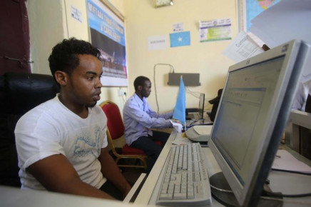 An internet cafe manager uses a computer in an internet cafe in the Hodan area of Mogadishu. PHOTO: REUTERS