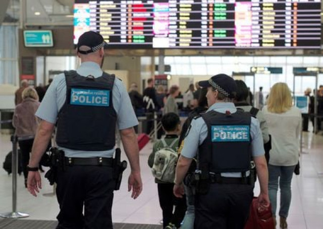Australia Federal Police officers patrol the security lines at Sydney's Domestic Airport. PHOTO: REUTERS