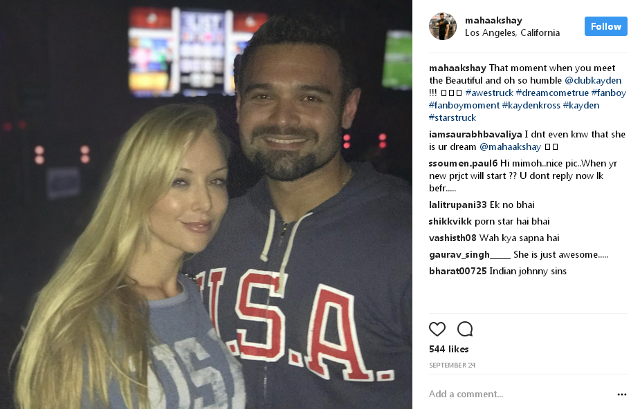 Although the actor hasn’t been able to make his mark in Bollywood, he has been able to hit headlines recently. Within a short amount of time, a picture of him with adult film star Kayden Kross has gone viral over the internet.