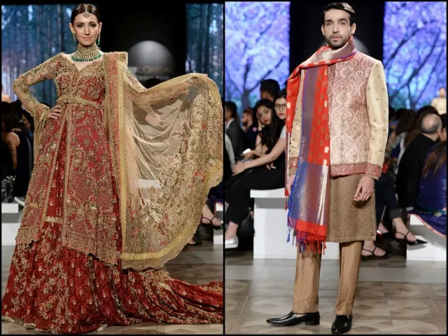PHOTO: PUBLICITYThe patterns in Aroos e Shehnai were inspired from the days of the Persian era, paying tribute to their heritage. Embroidered trousers, lehngas and embellished dupattas were a dominant part of the collection.