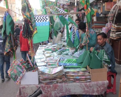 Paper Market on MA Jinnah Road crowded with buyers of flags and badges