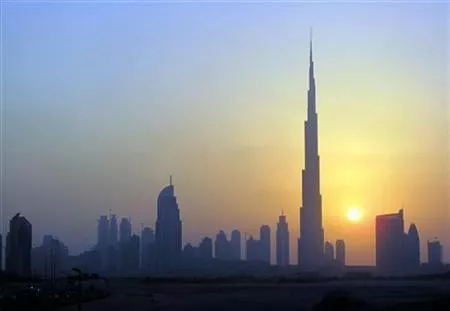 The Burj Khalifa (C) skyscraper is seen as the sun sets over Dubai,PHOTO: REUTERS