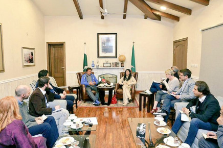 Imran Khan speaks to foreign media at Bani Gala. PHOTO: Twitter @anilakhawaja