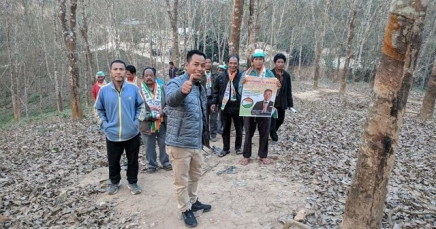 NCP candidate Jonathone Sangma with his supporters in Williamnagar in Meghalaya’s Garo Hills area PHOTO COURTESY: FACEBOOK/Jonathone Sangma