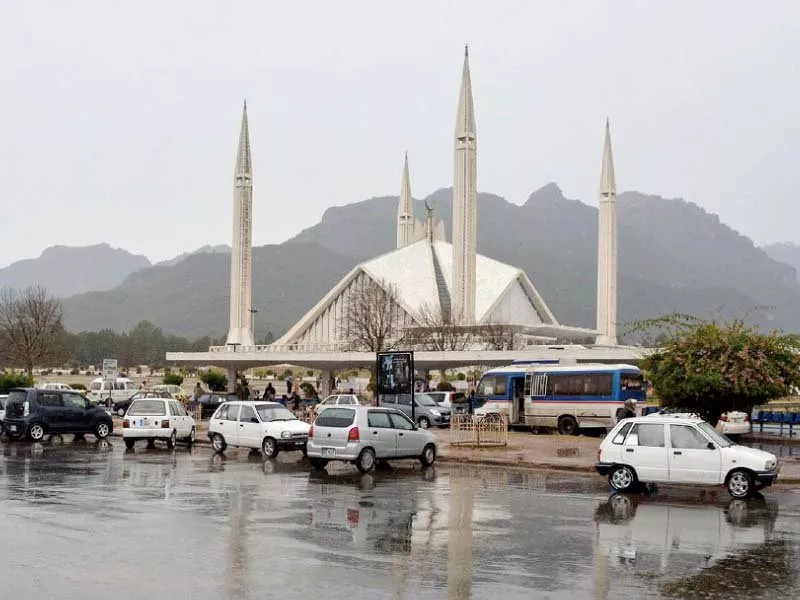 Vehicles of picnickers seen parked near Faisal Mosque. PHOTO: INP