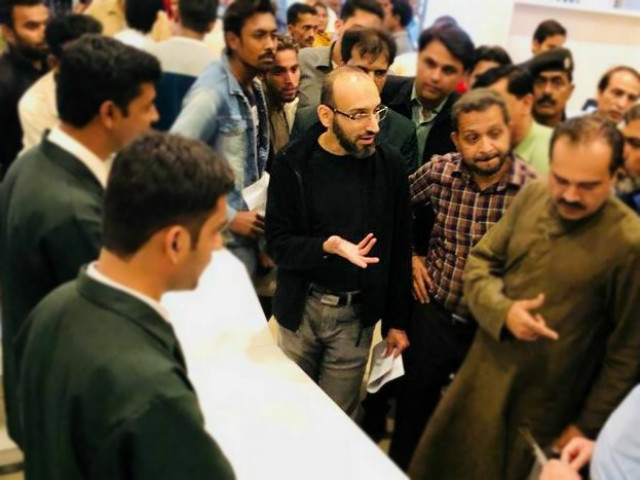 According to his spokesperson, Usman Mobin visited the offices across Karachi, inquiring customers awaiting their turns in long queues about issues they were facing.