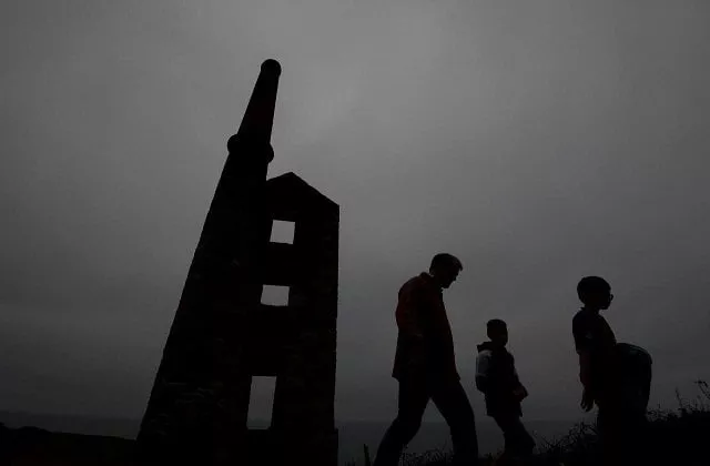 FILE PHOTO: A family walk past the remains of the engine house at the Wheal Prosper copper and tin mine, on the Cornish coastline near Porthleven in Cornwall, Britain October 26, 2017. PHOTO: REUTERS