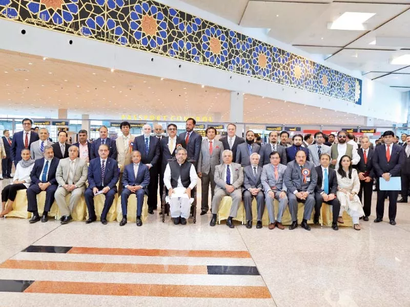 Prime Minister of Pakistan Shahid Khaqan Abbasi with the team of Civil Aviation Authority (CAA) management