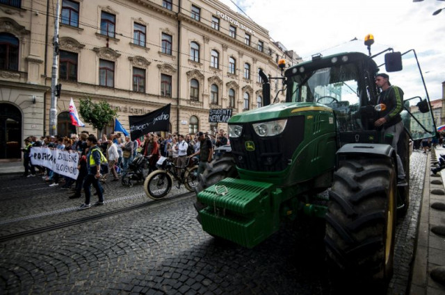 Hundreds of farmers from all over Slovakia drove their tractors into the capital on Tuesday in protest against alleged irregularities in EU farm subsidy payments first made public by Kuciak in a report on corruption and alleged ties between politicians and the Italian mafia.