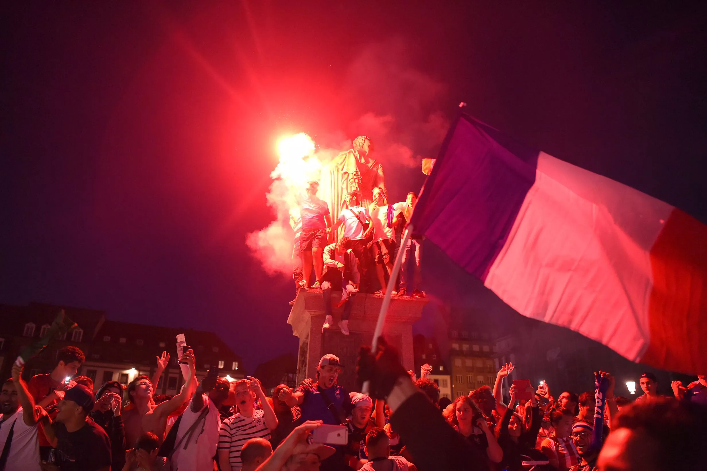 Samuel Umtiti's decisive goal in the 51st minute triggered the waving of a sea of tricolor flags as ecstatic supporters — many in the national team's colours — kissed and hugged and danced.