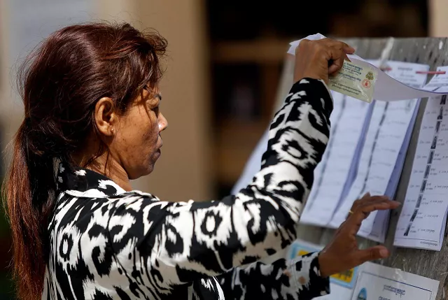 A voter looks at a voters list during a general election in Phnom Penh, Cambodia July 29, 2018. PHOTO: REUTERS