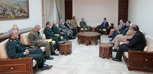 Syrian President Bashar al Assad meets with Iranian Defence Minister Amir Hatami in Damascus,Syria in this handout picture provided by Syrian Arab News Agency on August 26, 2018. PHOTO: REUTERS