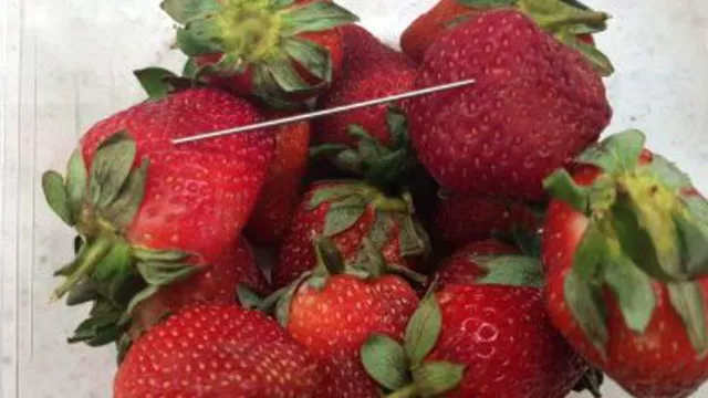 Since then, people have posted on social media photos of other strawberries with small metal pins stuck into them.
