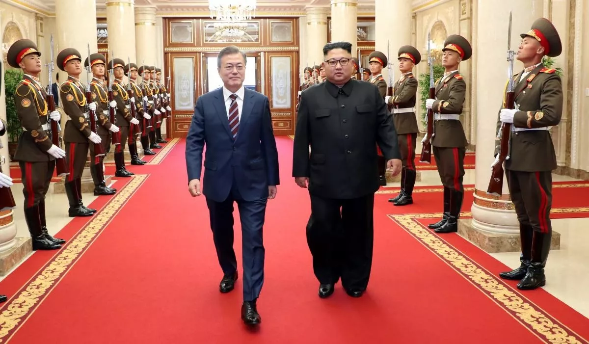Moon said it was “time to bear fruit” and thanked Kim for his hospitality, which included a massive welcome ceremony at Pyongyang International Airport featuring a large, goose-stepping honour guard and a military band.