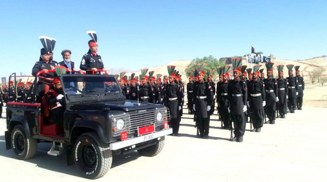 Sector Commander North Brigadier Nadeem Sohail inspects the Frontier Corps 62nd passing-out parade in Loralai. PHOTO: EXPRESS