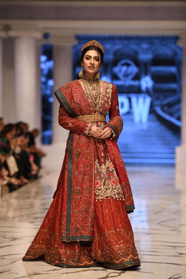 PHOTO: TAPU JAVERIBoth modern day and conventional styles were spotted on the catwalk. Amna Aqeel's collection featured contemporary designs such as asymmetric cuts, cupcake skirts and exposing overcoats. It also included a red-hot, silken suit. But, she wasn't the only designer that showcased a suit. HSY displayed a grey suit entailing an open-cut blazer and cropped cigarette pants while Zainab Chottani's compilation presented a shiny, silver-toned suit with an oversized blazer and wide-legged culottes.