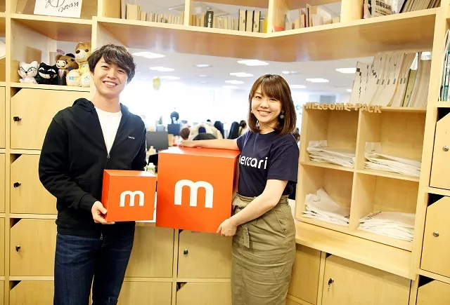 Employees of Mercari Inc. Takashi Murakami and Ayano Okuda pose for a photograph at the company office in Tokyo, Japan, December 5, 2018. Photo: Reuters