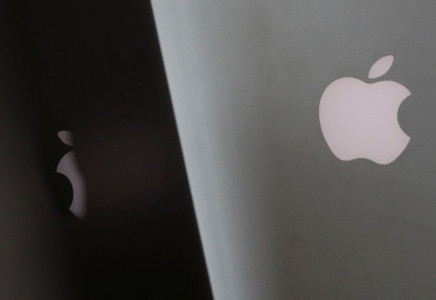 Apple company logos are seen as two MacBooks stand next to each other in an office in Vienna, Austria January 3, 2019. PHOTO: REUTERS
