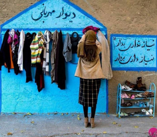 Anyone who has need for clothing or items can take it from the wall for use without any charge or fine