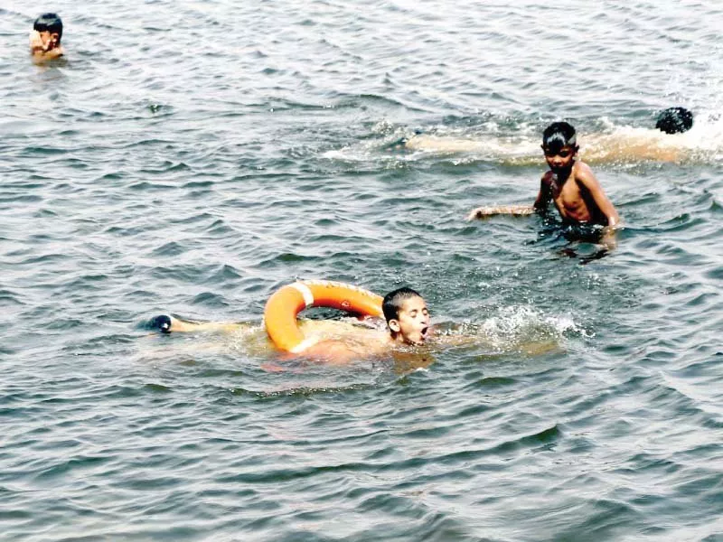 Children enjoy a swim at China Creek on a hot summer day to beat the heat. PHOTO: PPI