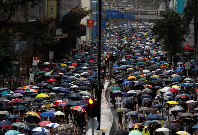 The Chinese-ruled city’s MTR rail operator suspended some services to try to prevent people gathering but protesters made it to a sports stadium in the vast container port of Kwai Chung, from where they marched to nearby Tsuen Wan.