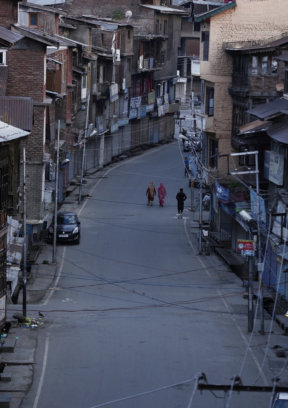 Kashmiri women walk on a deserted road. (PHOTO: REUTERS)