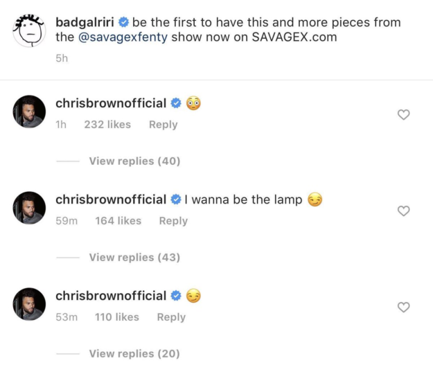 However, it was not Rihanna who gained everyone's attention in the post, regardless of her utterly alluring appearance. In fact, it was her ex-boyfriend, the renowned Chris Brown, who commented on that post attempting to flirt with her while wanting to be her 'lamp'.