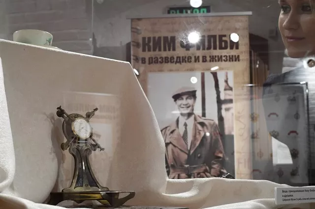 In this file photo taken on September 29, 2017 in Moscow a woman looks at personal belongings of British KGB agent Kim Philby during the exhibition "Kim Philby in espionage and in life" at the Russian Historical Society. - Fresh details of one of Britain's biggest Cold War spy scandals, in which a network of Soviet agents stole prized naval intelligence secrets, emerged in newly-released secret files on Tuesday, September 24. (Photo: AFP)