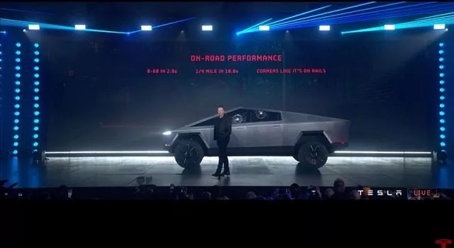 The industrial-looking Cybertruck is covered in the same steel alloy Musk plans to use for his SpaceX Starship rocket and will be able to go from 0 to 100 kilometers (62 miles) per hour in about three seconds, the Tesla chief executive claimed in his presentation.