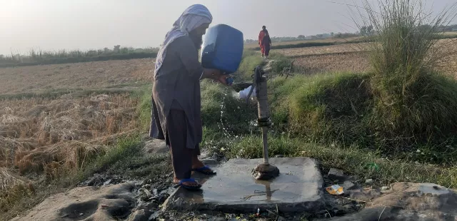 “We used to get fresh water in our homes a long time ago. Unfortunately, water from both the well and the hand pump in our house has turned brackish and there is also an unpleasant smell in the water,” said Abdul Malik, a villager. “My entire family has to walk for miles to get water from the hand pumps set up in agricultural lands. In the summer, we have to go there thrice a week while in winter, we make one trip per week to the pumps to fulfill our drinking needs.”