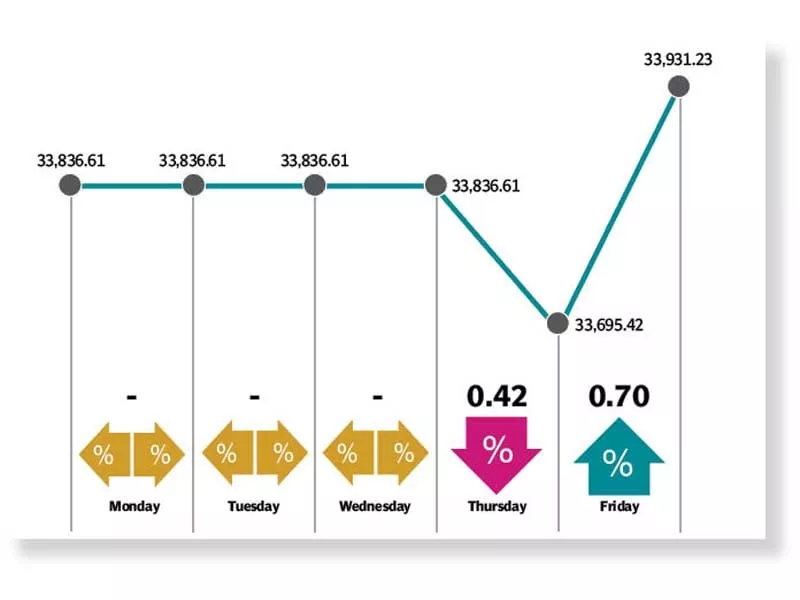 Although the index had managed to cross the 34,000-point mark, selling pressure, stemming from concern over a surging fiscal deficit, wiped off most of the gains. An expected Rs216-billion subsidy for the power sector in the federal budget for FY21 pushed stocks up. However, rupee instability against the dollar coupled with pre-budget uncertainty dented investor interest. The ongoing developments also prompted profit-taking, which tempered gains during the day.