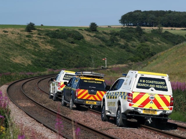 Police received reports of a train derailing near Stonehaven, 15 km (9 miles) south of Aberdeen, at 0940 a.m. on Wednesday.