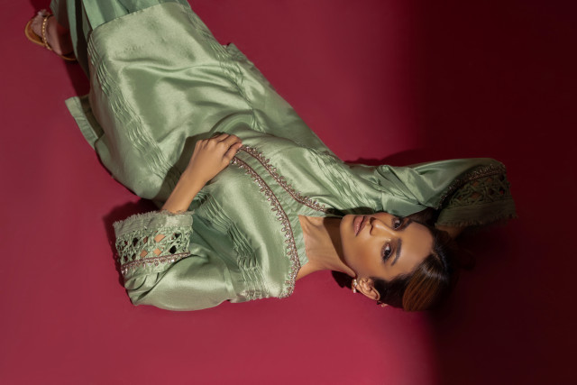 Understated elegance at its best, the apple green Rania set is a must-have this season