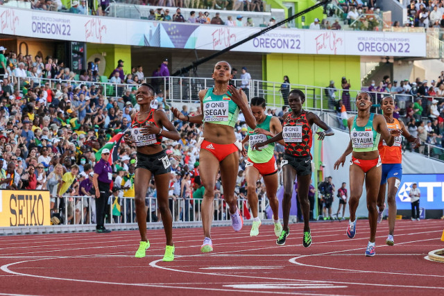 Runner clocks 14min 46.29sec to lift women’s title; Hassan leaves Eugene empty-handed
