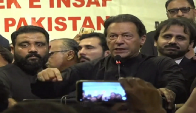 “I am fighting for real freedom from these thieves and I want everyone to join me in this struggle. I want you all [lawyers] to come together and join us in this struggle,” Imran said, “If these thieves succeed this time, our country will have no future.”