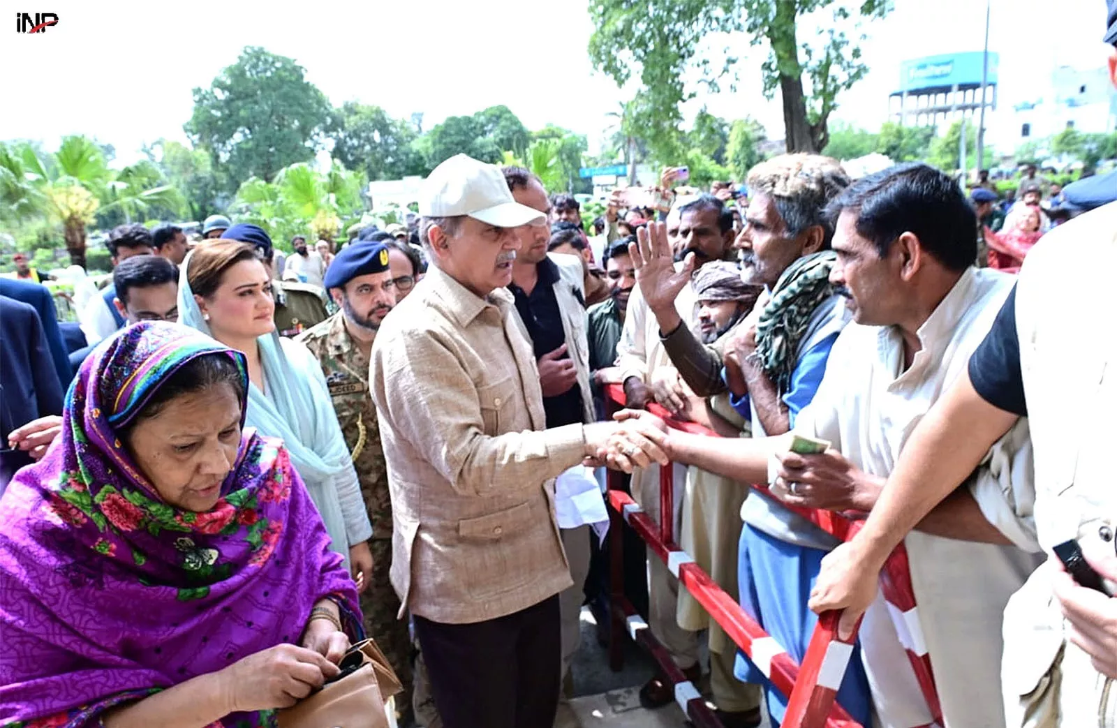 The prime minister participated in the distribution process and handed over bags to the people standing in queues, besides he also checked all the facilities and the quality of flour.