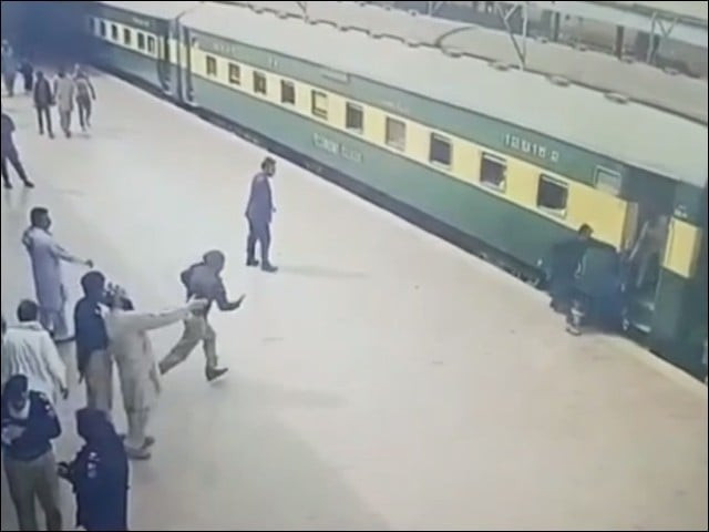 WATCH: Cop saves falling passenger from moving train in Rawalpindi