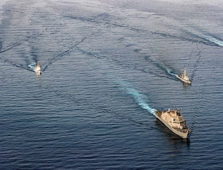 The US Navy's USS Sioux City and Coast Guard ships take part in an exercise while transiting the Strait of Hormuz in December PHOTO: AFP