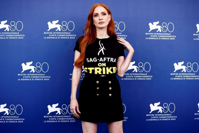 Actors went on strike in July, joining writers who had walked off the job in May, to demand that streaming sites and film studios improve their contracts and impose curbs on the use of artificial intelligence. "I am here because SAG-AFTRA has been explicitly clear that the way to support the strike is to post on social media, walk the picket lines and to work and support interim agreement projects," Chastain said.