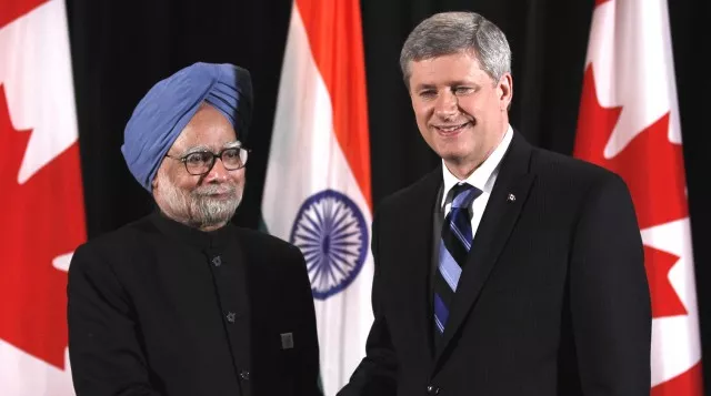 Canadian Prime Minister Stephen Harper and Indian Prime Minister Manmohan Singh witnessed the signing of the nuclear agreement on the sidelines of a summit of the Group of 20 developed and emerging nations.